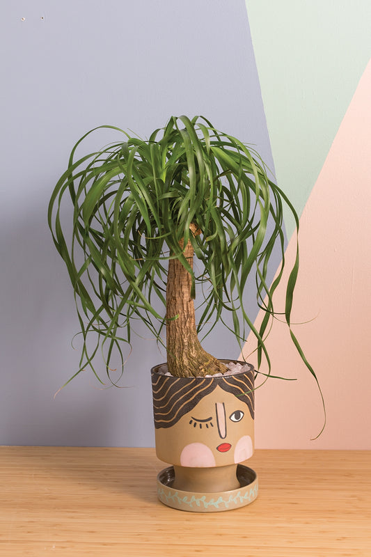 Etta Winking Face Pot w Saucer 6 inch