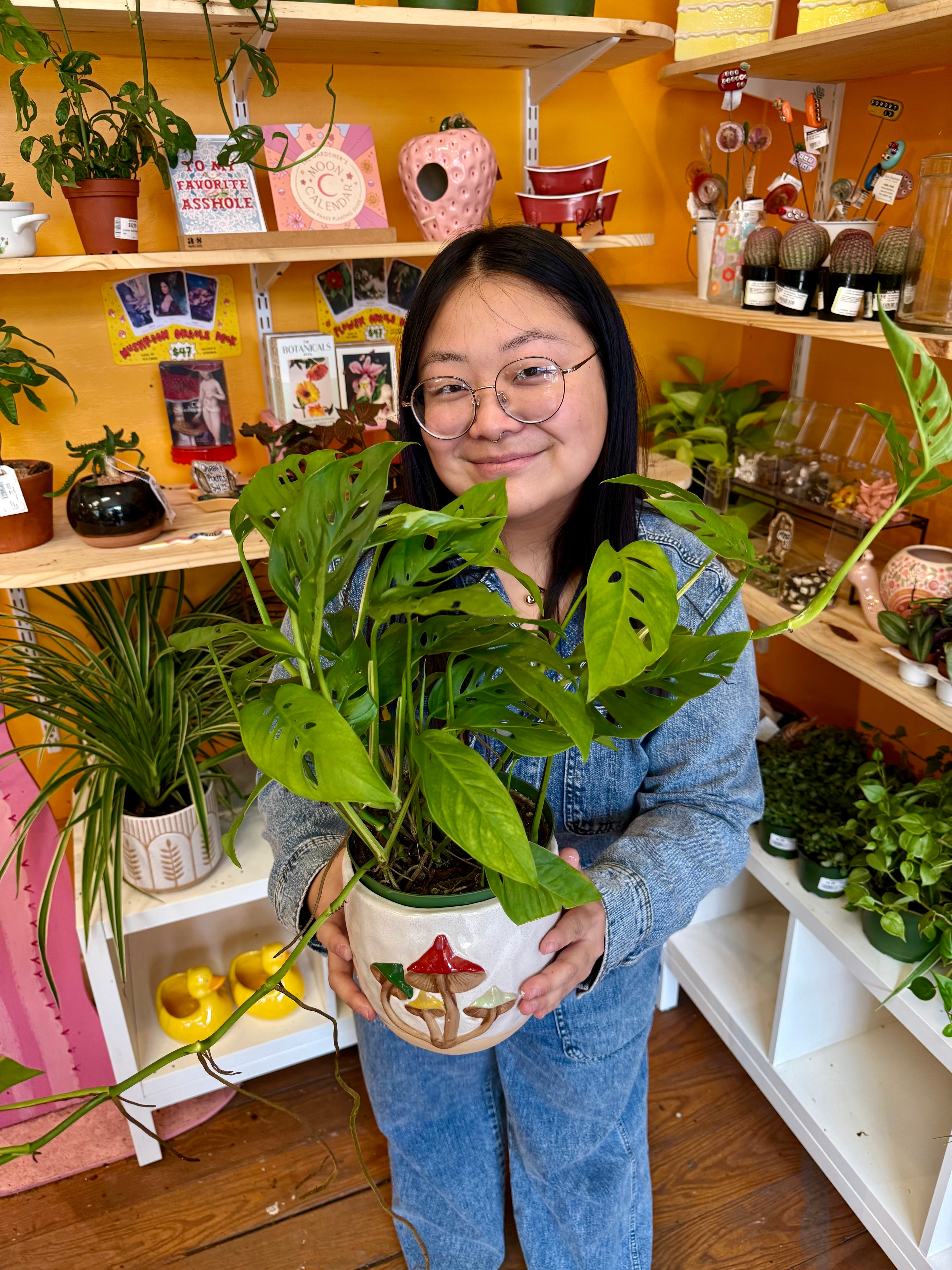 When she isn’t watering the shop plants, Tiana spends her time taking care of her own plants and working on print ideas (as she is a printmaker)! She’s been with Jungle House since 2023 and loves collecting tradescantias and plants that remind her of her hometown of Hilo on the Big Island of Hawai’i.