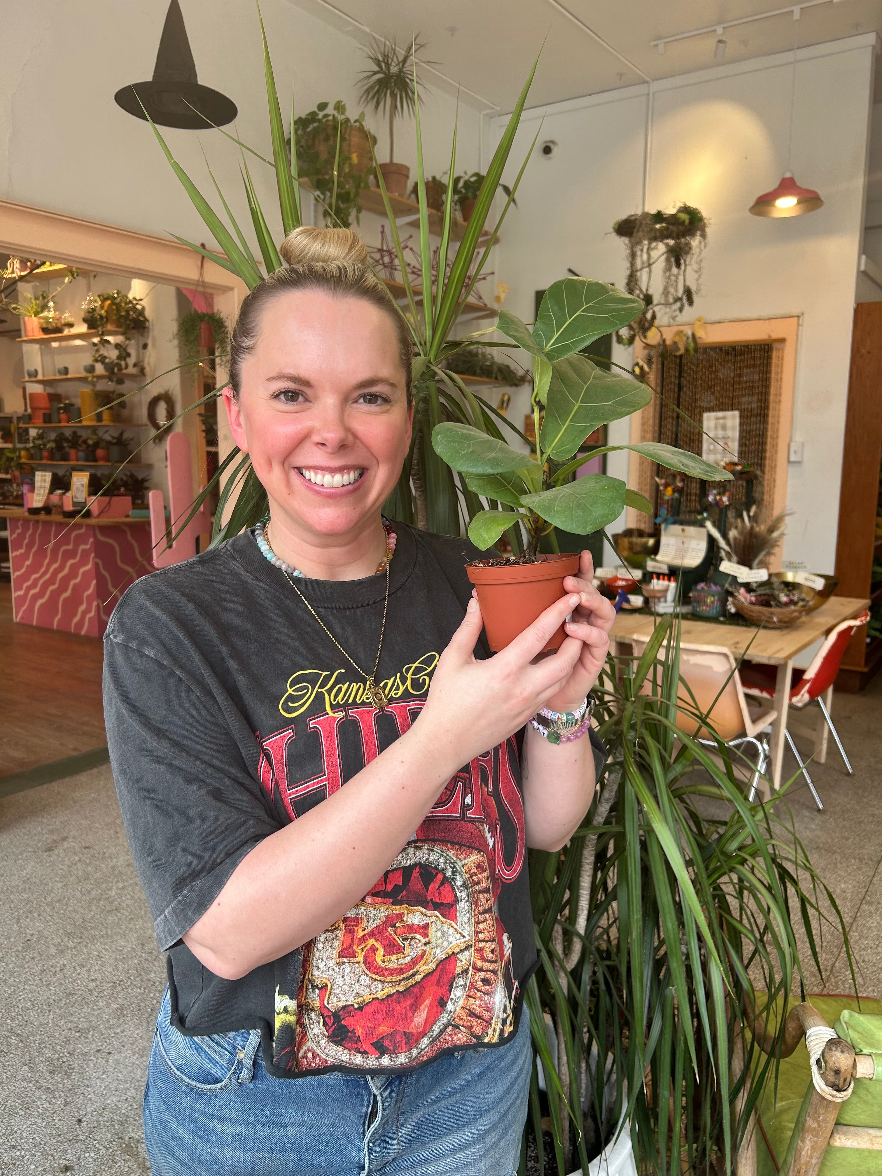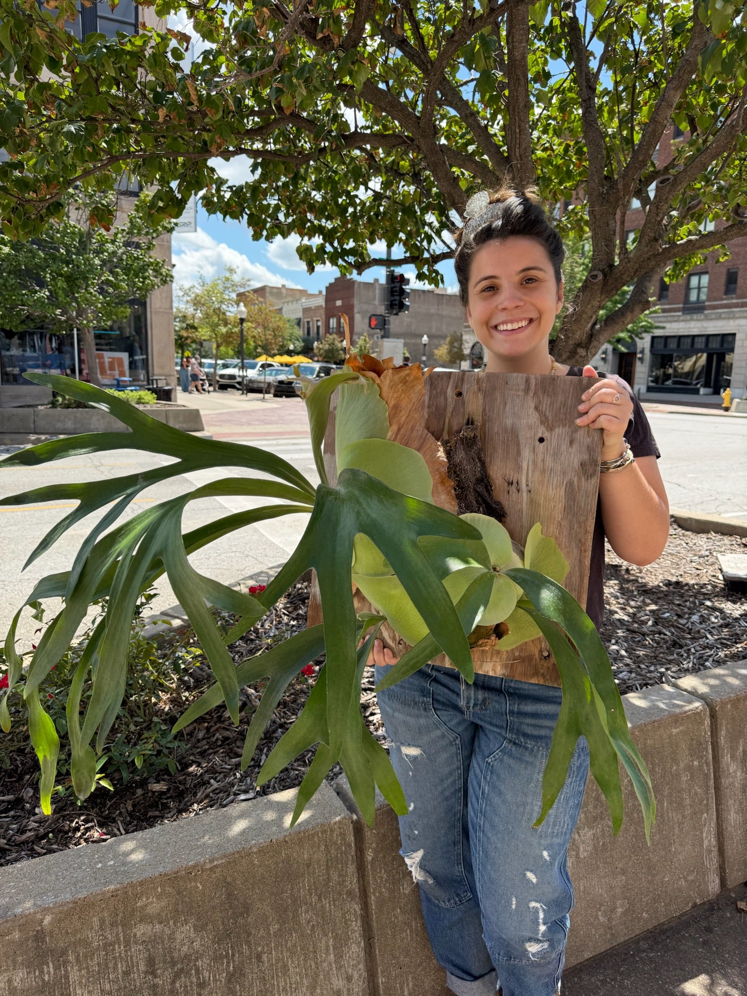 If you don't find Hadley at the shop, she’s probably spoiling her silver lab, Daisy May, or at KU finishing up her degree in psychology. Hadley’s favorite plants are the pink princess and white knight philodendrons because of their beautiful variegation. She loves seeing how plants bring beauty and calm into a space, and she brings that same balance to everything she does.
