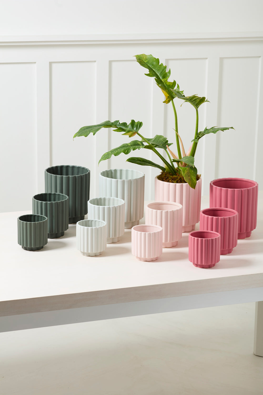 Perfect as an everyday basic with a rounded, fluted design, the matte ceramic Carmen Pot is a stunning home for any houseplant with its soft color & super smooth finish. Watertight with a versatile pale blue/mint green pop of color, this modern pot is ideal for a 4-inch standard drop-in plant or potted directly with a drainage hole added.
