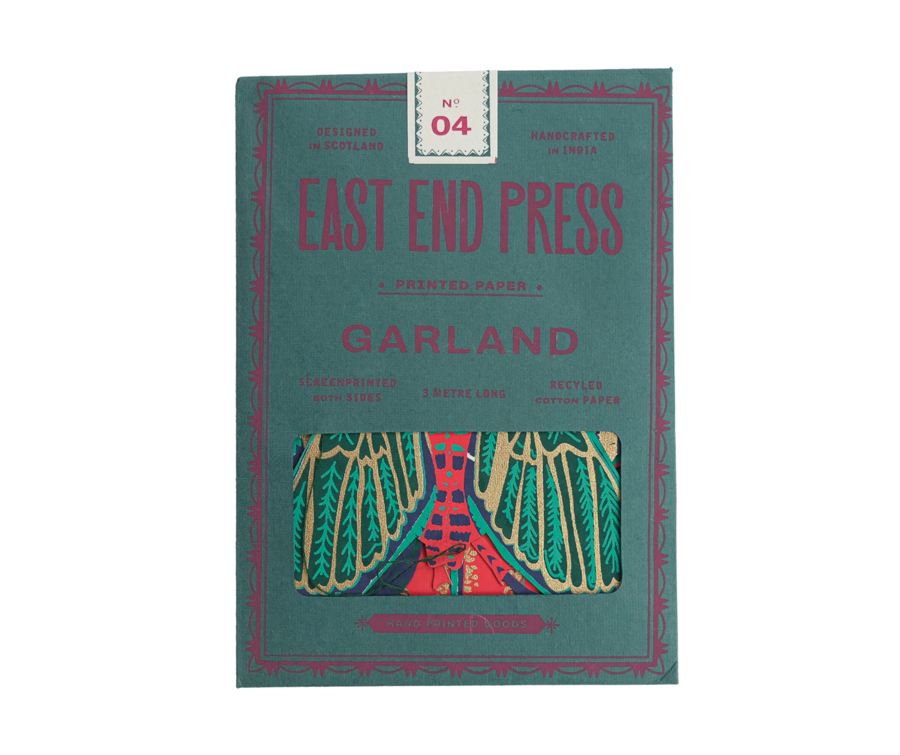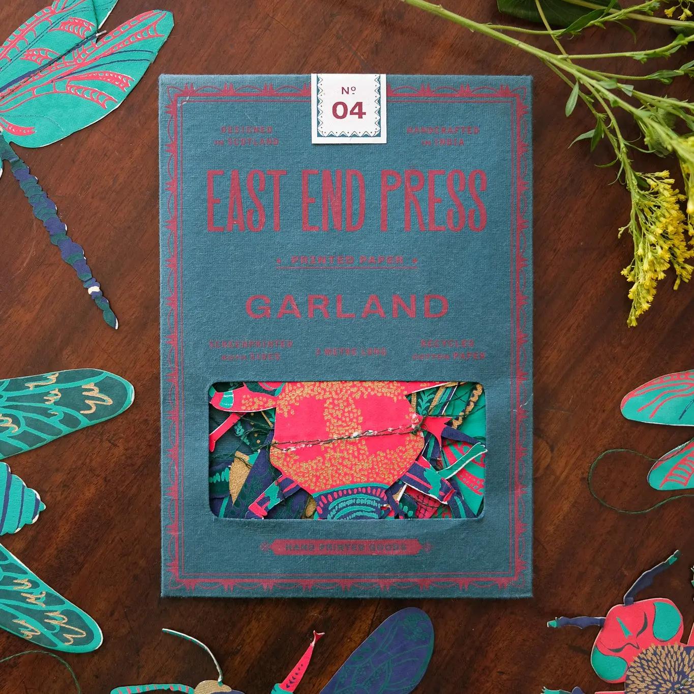 Ten decorative beetles, moths and insects, each adorned with metallic flourishes, are sewn to create this spectacular garland.
