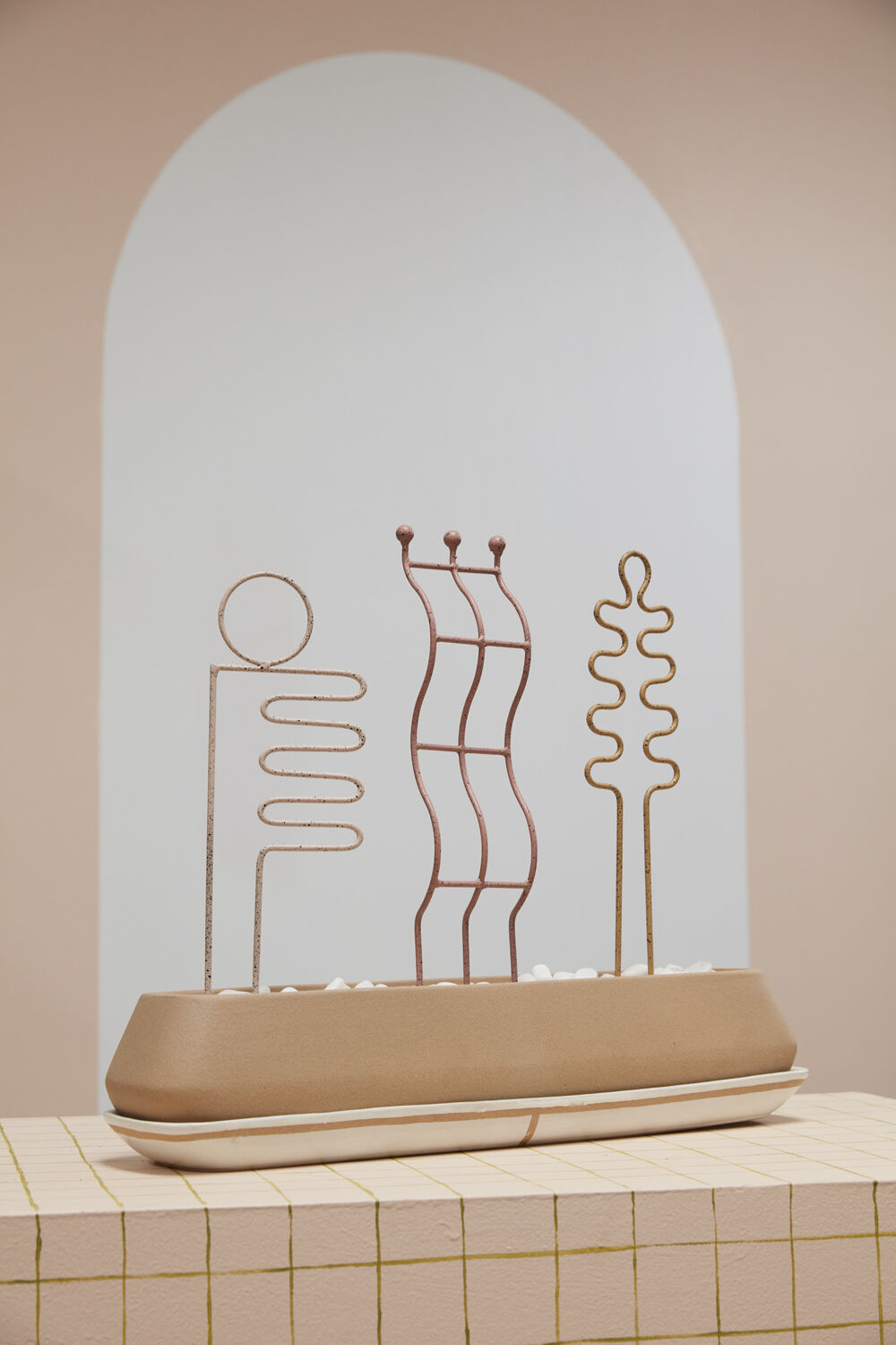 Quirky, playful, & perfect for supporting leggy plants, the Menil Plant Stakes add fun & function to your pots. This metal plant stake features curvy, dimensional lines with ball tops (8 inches tall) & a speckled, mauve pink finish to protect from moisture. The 5.5-inch long straight portion fits deep into soil, while the 1/2-inch thick gauge metal & wavy style helps support a trailing plant in multiple directions.