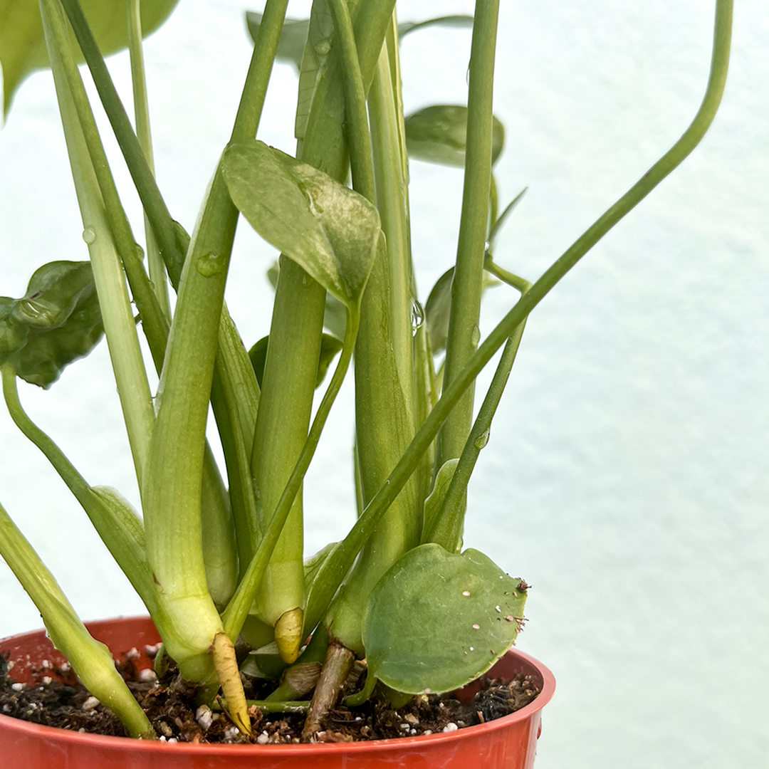 A popular and rewarding epiphyte with giant fenestrated leaves on thick jungly stems. The fenestrations, or holes in the leaf surface, have evolved to allow wind to pass through without damaging the plant and to provide a larger surface area for these understory plants to receive dappled sunlight. At the 4” size, plants vary in size but mainly have juvenile, solid leaves.