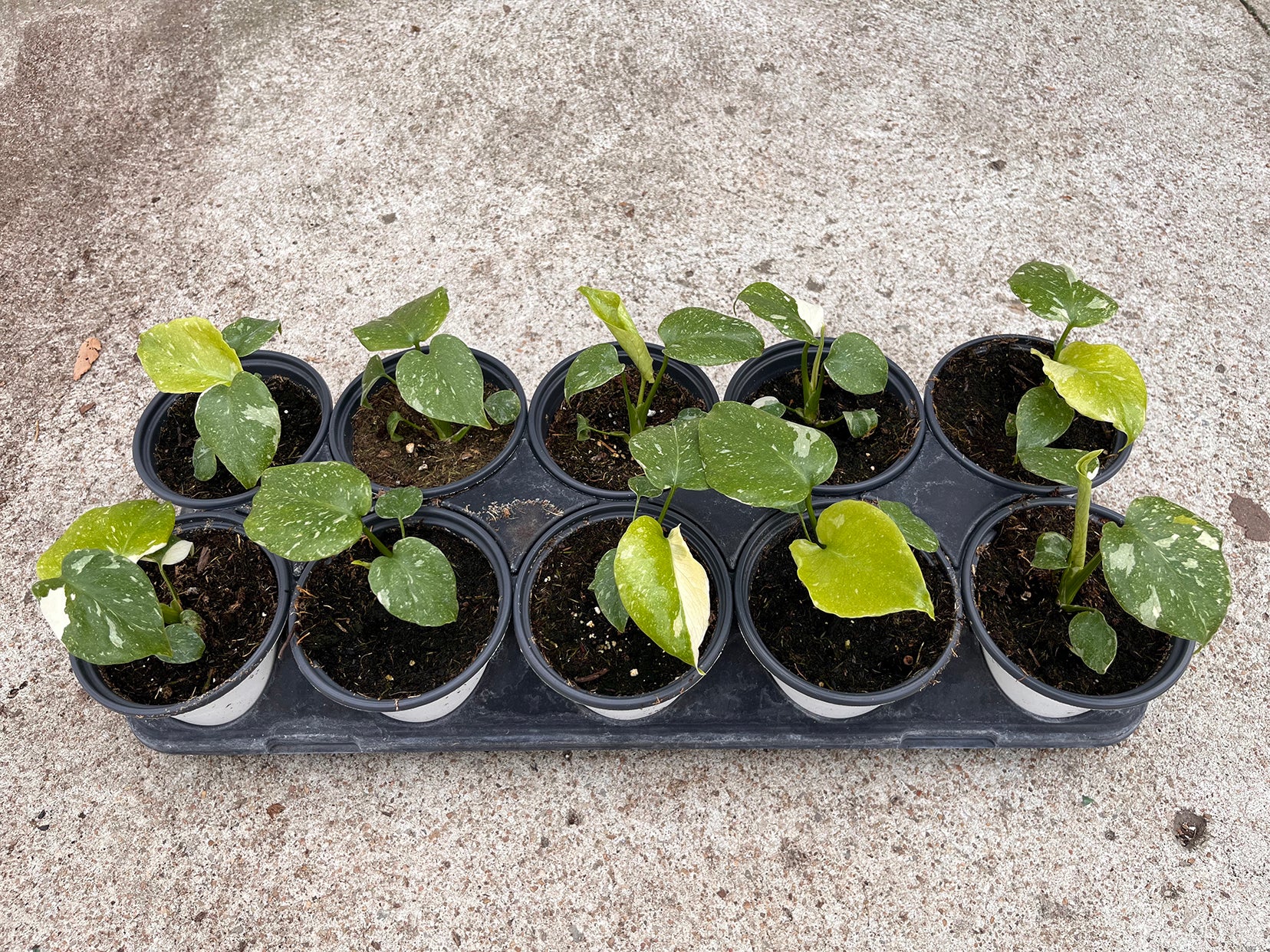 A classic collector's plant, Monstera deliciosa 'Thai Constellation' features gorgeous, fenestrated foliage with abundant white-yellow variegation that resembles a starry sky. Reaching up to 4' tall and wide, the plant has a bushy habit with huge (2') drooping or upright foliage on thick upright stems.