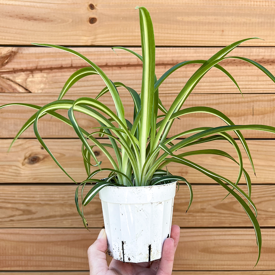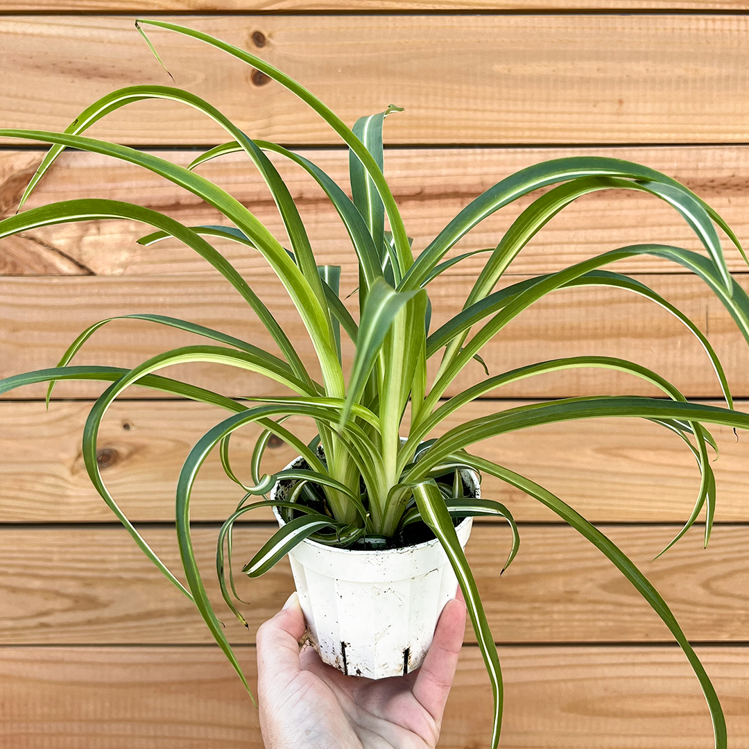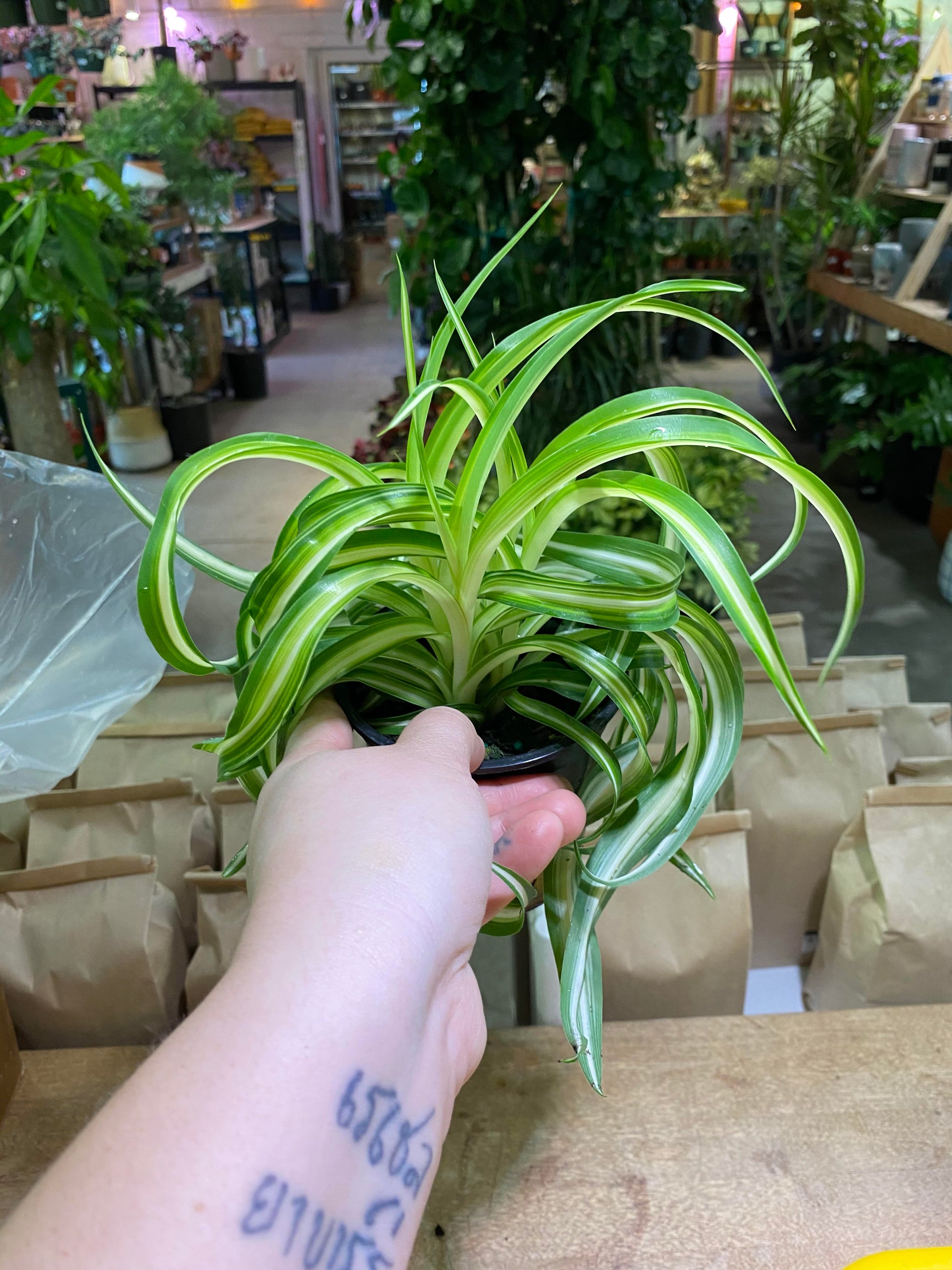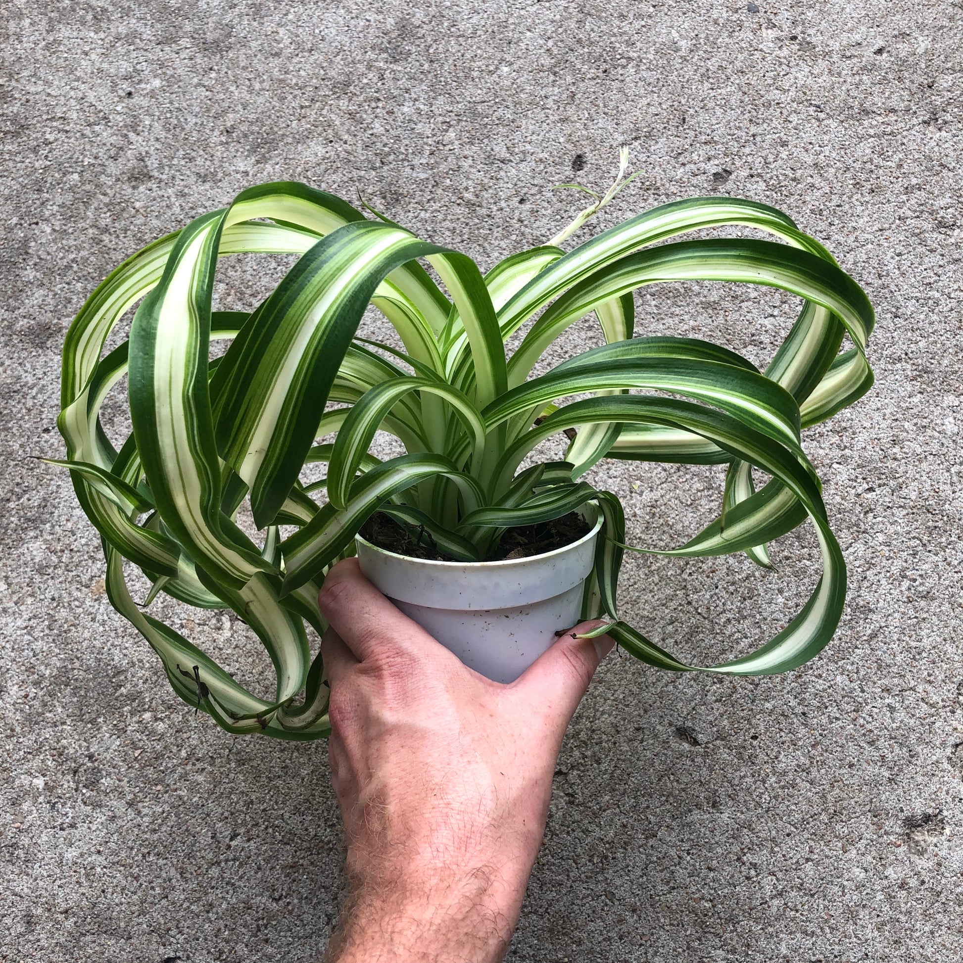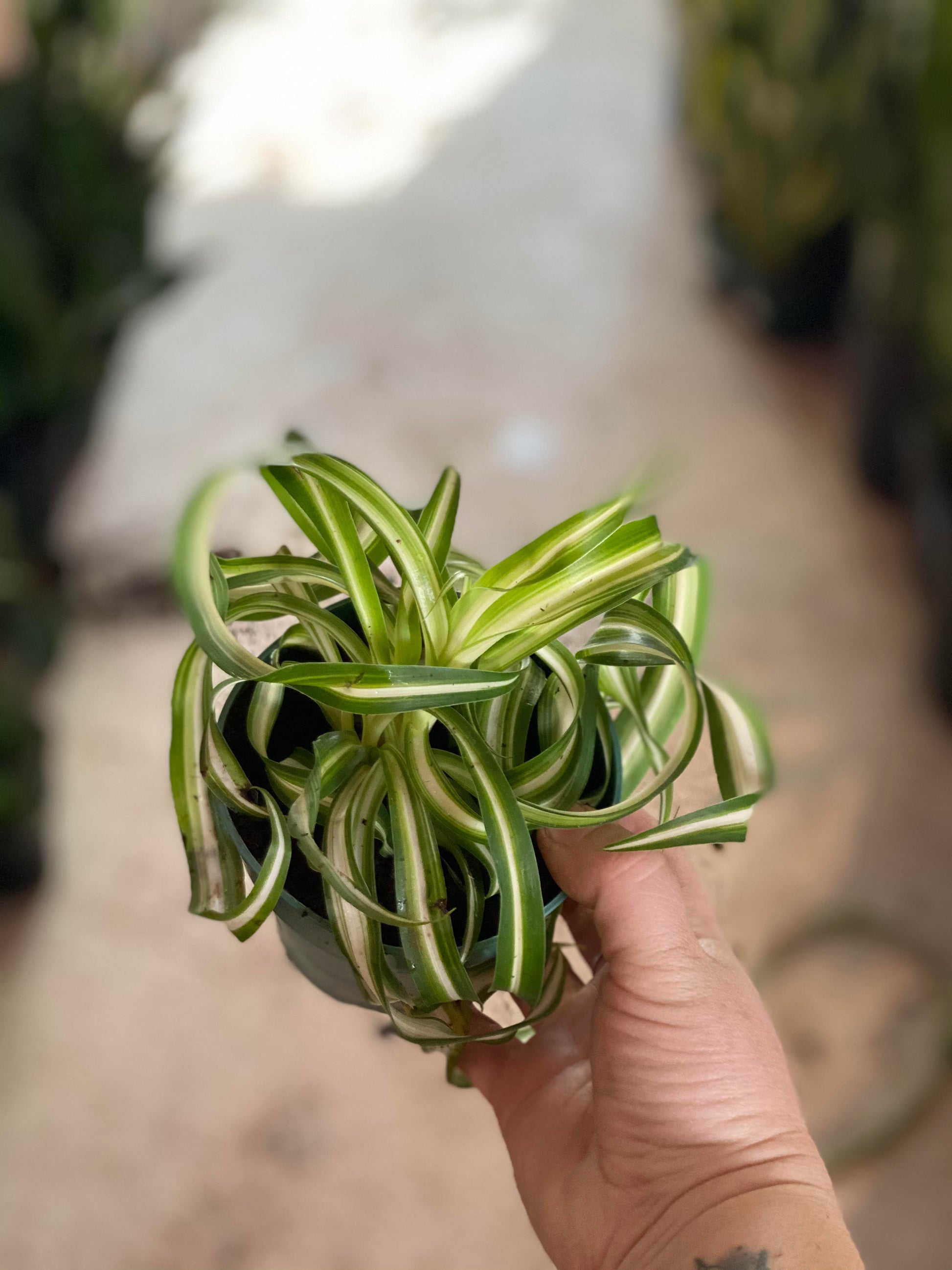 Fancy curls on this variegated spider plant. Easy to propagate!
