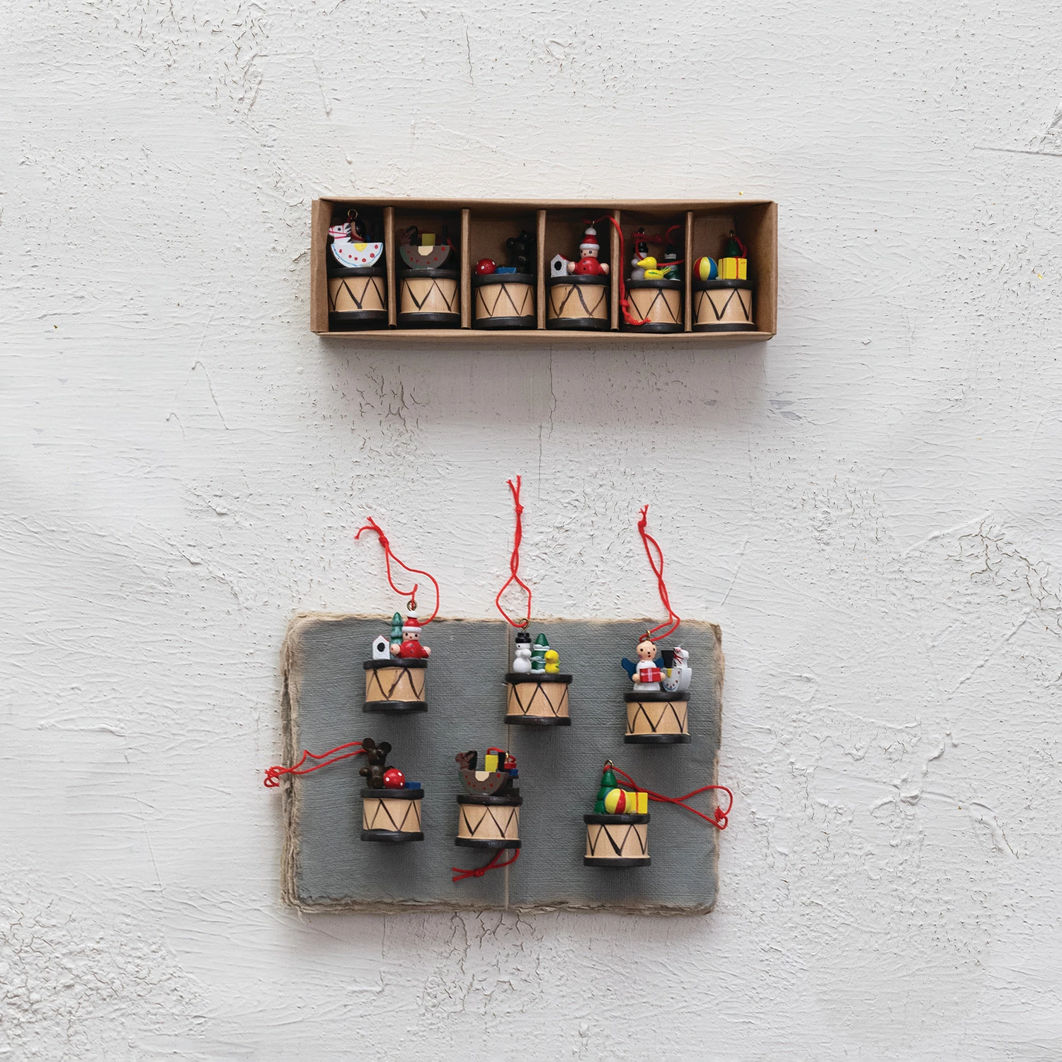 Assorted Wooden Vintage Holiday Drum Ornaments (single)