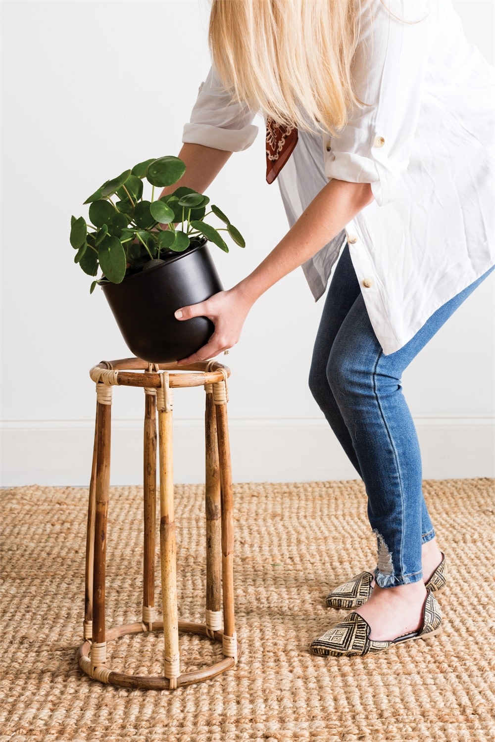 The Boca Plant Stand elevates any plant to just the right height with a curved metal pot that drops into a rattan base.