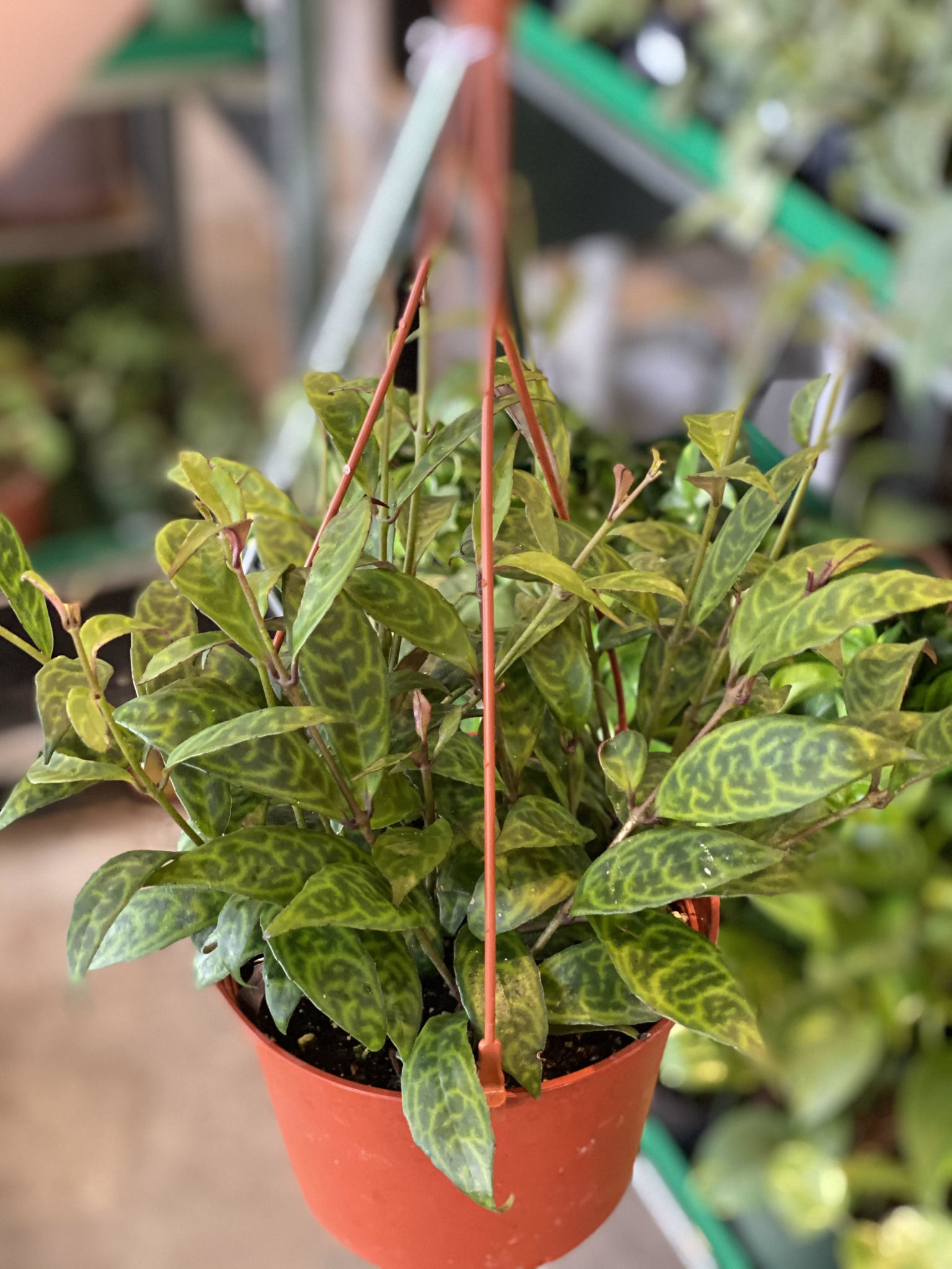 Potted in a 6" hanging basket.