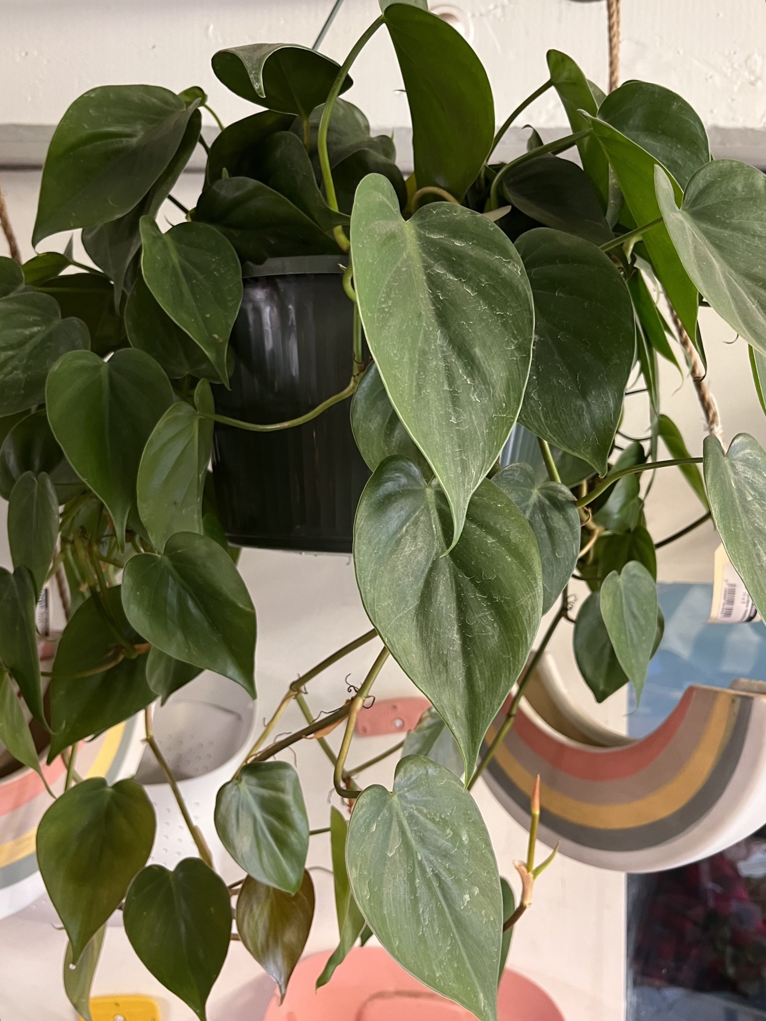 Easygoing, classic vining philodendron, with vines that can trail or climb and grow long quickly under the right conditions.